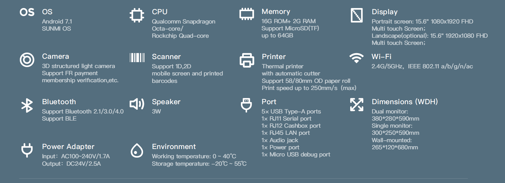 • Además de venir equipado para impresión, cuenta con escáner para códigos de barras y QR, y sistema de verificación Face-ID para pagos.