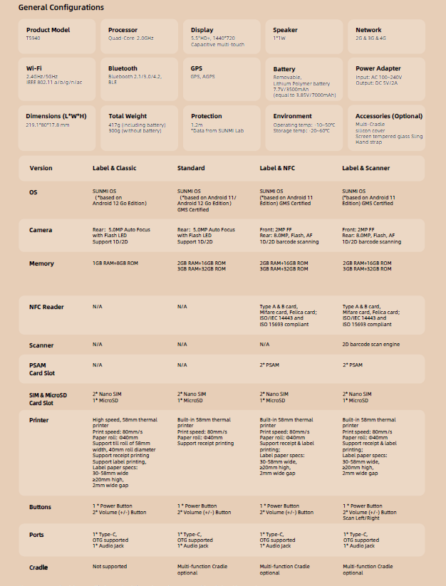 SUNMI V2s está equipado con diversas configuraciones de memoria y ofrece una mayor velocidad de operación. Su batería removible de 3500 mAh garantiza una experiencia fluida y de larga duración. Incorpora impresión dual para tickets y etiquetas, con un algoritmo inteligente de detección automática de etiquetas para mayor precisión. Además, su motor de escaneo 2D profesional permite leer códigos de barras incluso si están rayados, doblados o manchados. Su diseño reforzado brinda mayor protección contra caídas y uso intensivo.
